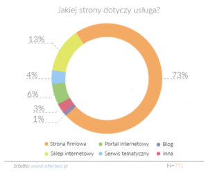 Ponadto zleceniodawcy poszukiwali też wykonawcy sklepu internetowego (13%), portalu internetowego (6%), serwisu tematycznego (4%) oraz bloga (1%).