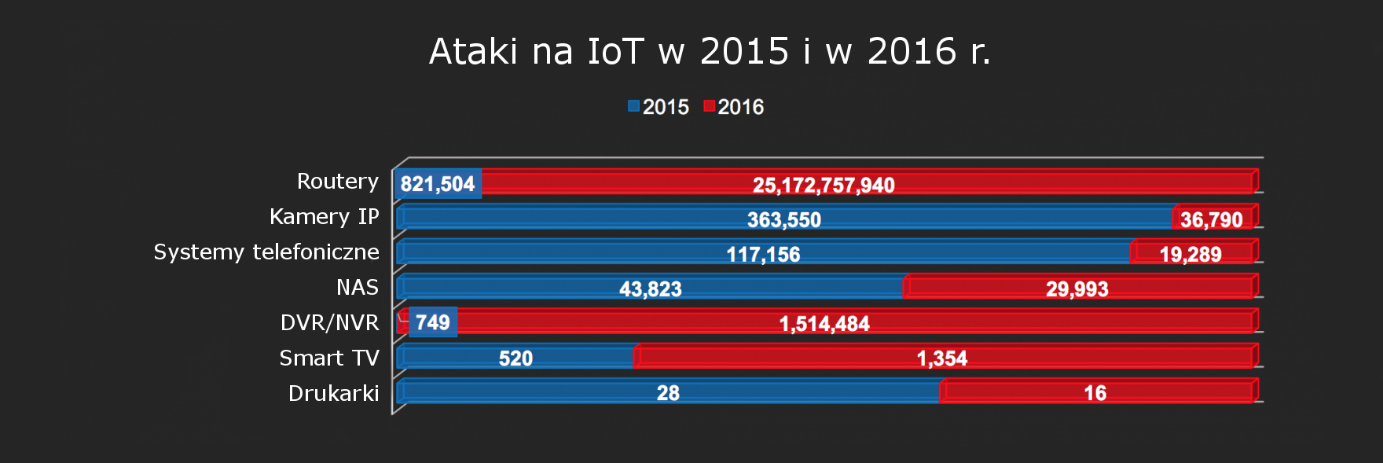 Zestawienie najczęściej atakowanych urządzeń IoT w 2016 r.
